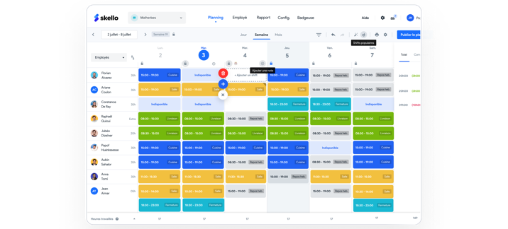 Skello est une solution de planning intelligent qui permet à tous les commerçants et professionnels d’optimiser leur business en gérant au mieux leur personnel. Dans Skello, vous pouvez créer des plannings, automatiser la création des fiches de paies et entretenir la communication avec vos employé-e-s.