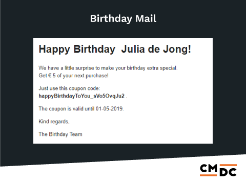 - Wish your customers a happy birthday and surprise them with a discount code.