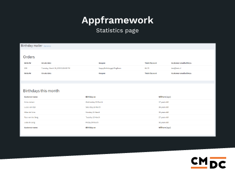 You first fill in the email settings, then you create an email template for a specific language and then you enter the discount code setting. After that, Birthday Mailer does the rest. Your customers will receive a birthday wishes email on their birthday. The customers having a birthday and the discount codes that have been sent via Birthday Mailer can easily be found in an overview.