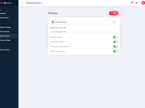 You put a lot of time and effort in your writing your store’s content and creating beautiful images. Of course you wouldn’t want competitors and copycats just easily stealing your valuable work, right? With the Copy Protection app you’ll have a complete toolset to frustrate copy attempts in multiple ways, also preventing large scale scraping and making it hard if not near impossible to copy any content at all.