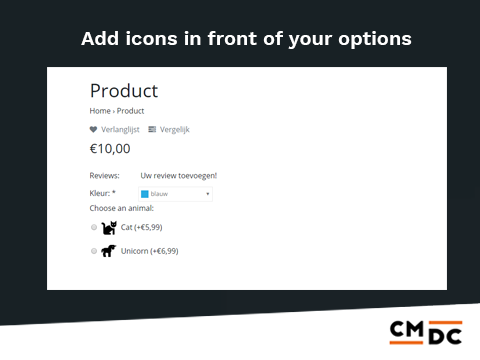 Option Icons ensures that images are shown for the different options with a product. This gives your customers a better idea of the option.