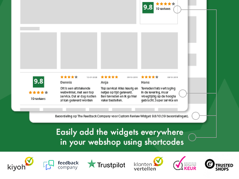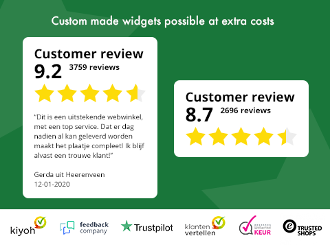 - Works with KiyOh, Klantenvertellen, Webwinkelkeur, The Feedback Company, Trustpilot and Trusted Shops